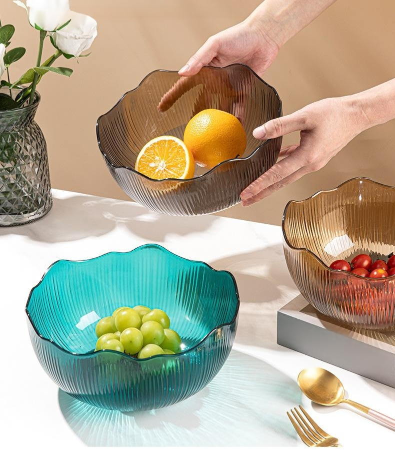 طبق فاكهة بسعة كبيرة يناسب غرفة المعيشة بتصميم بسيط، مثالي لتقديم الوجبات الخفيفة والفواكه، مصنوع من مواد متينة وسهل التنظيف.